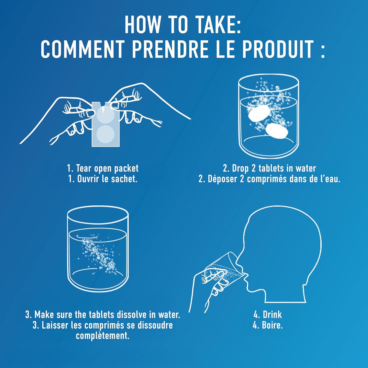 - Fully dissolve 2 tablets in 4 ounces of water before taking.