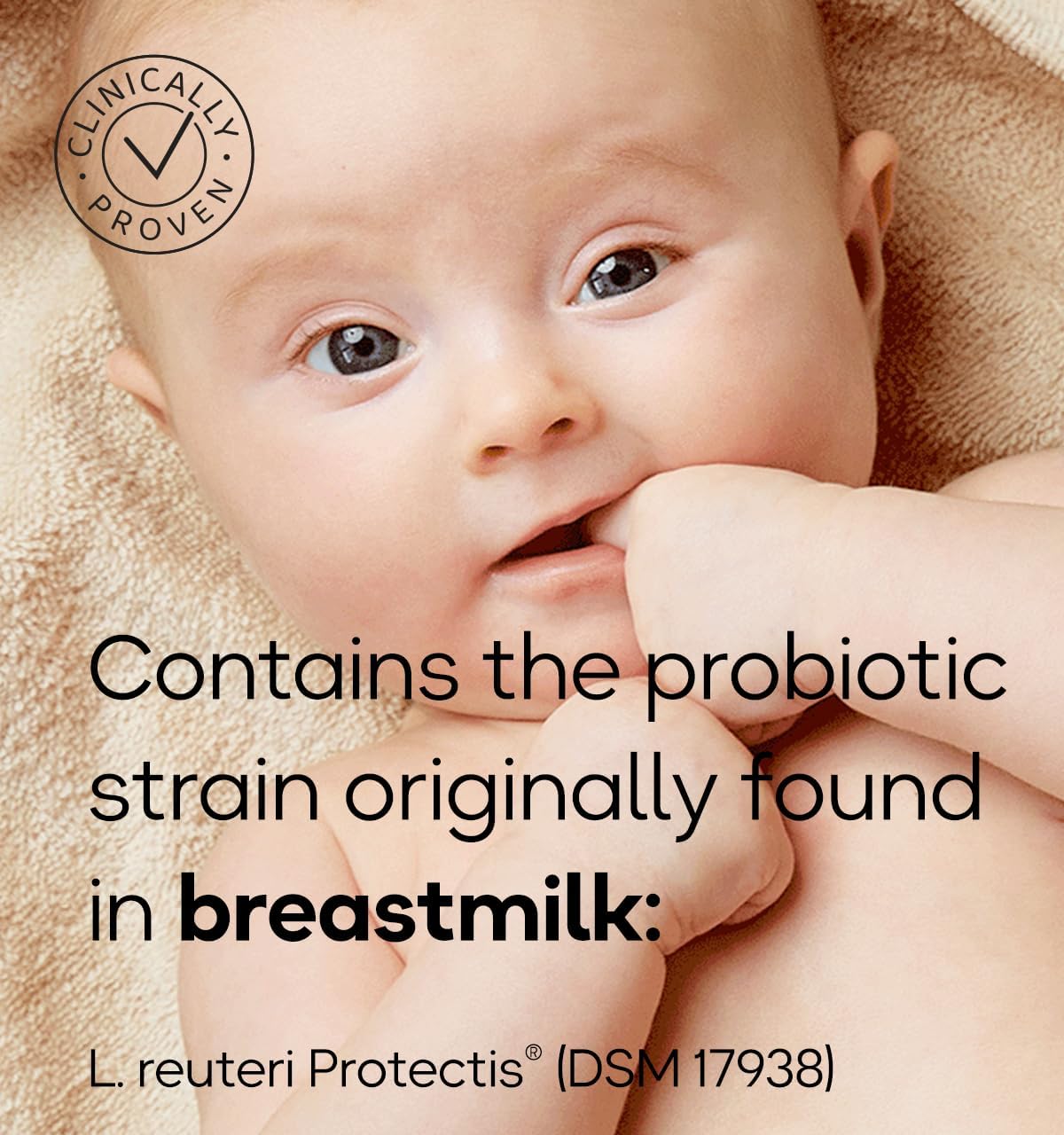 - Contains the probiotic strain originally found in breastmilk.