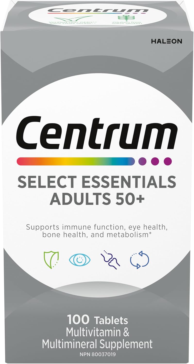 Centrum Select Essentials 50+ is formulated with a balance of vitamins and minerals for adults over 50.