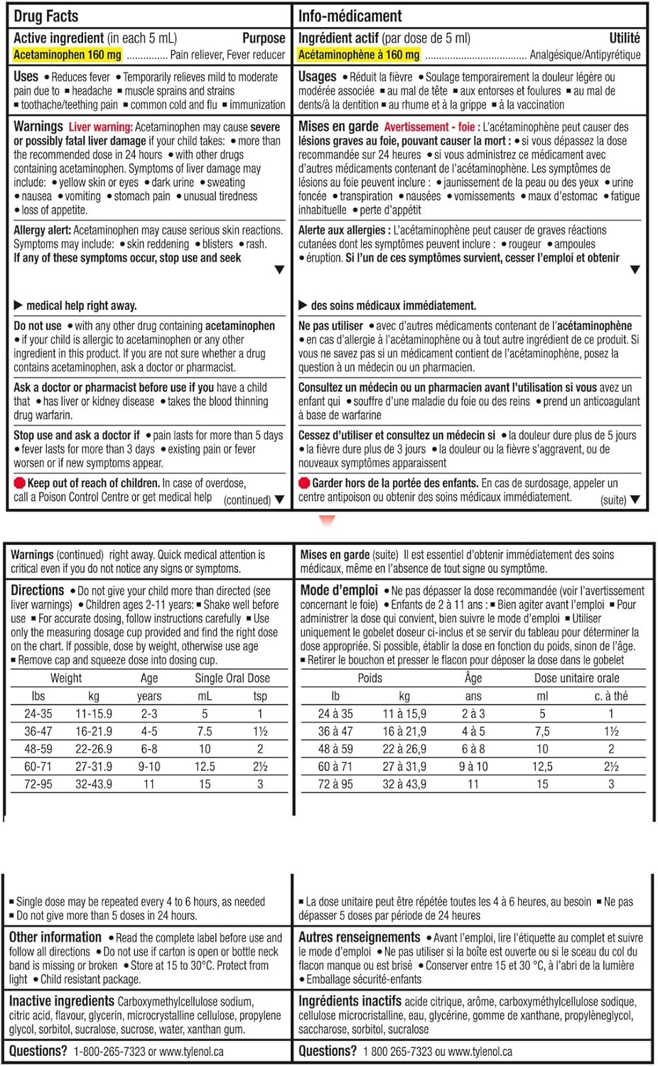 Children’s Tylenol Acetaminophen Liquid Suspension Dye free Cherry