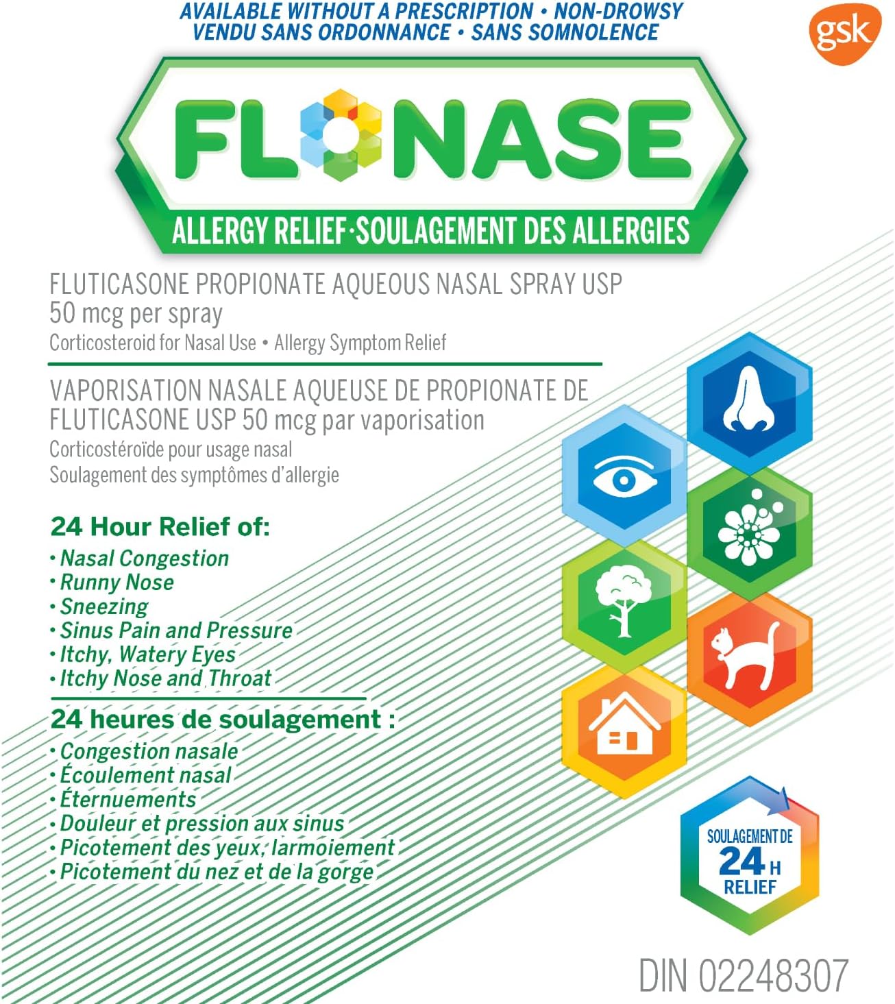 FLONASE® Allergy Relief temporarily relieves seasonal (e.g. hay fever) and year-round allergy symptoms caused by pollen, mold, dust and pets.
