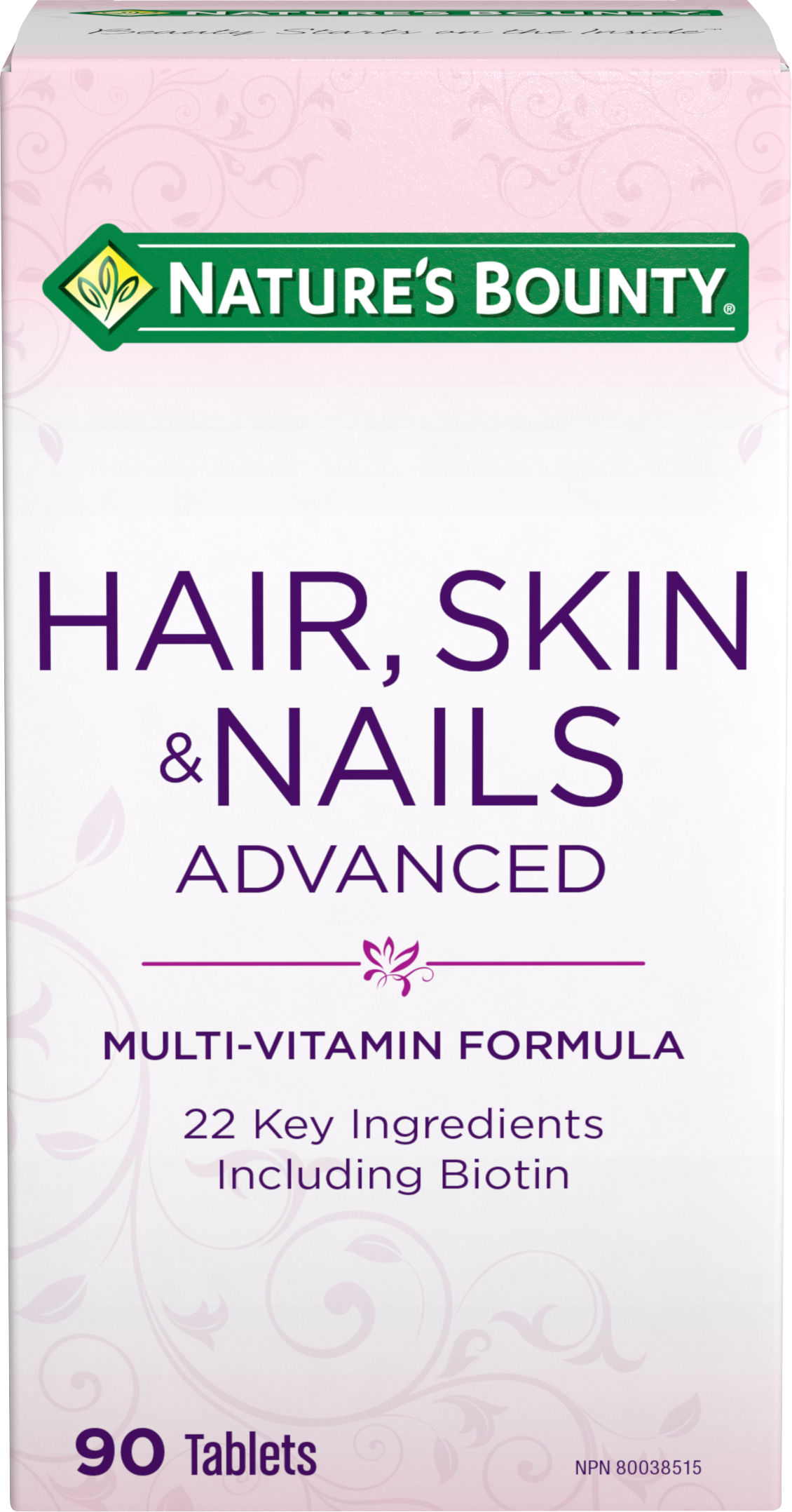 Being healthy is always beautiful! Nature’s Bountyยฎ Hair, Skin & Nails Advanced Multivitamin Formula will help you look good and feel great. This unique multivitamin formula has 22 ingredients (including biotin), to help maintain your hair, skin, and nail structure.