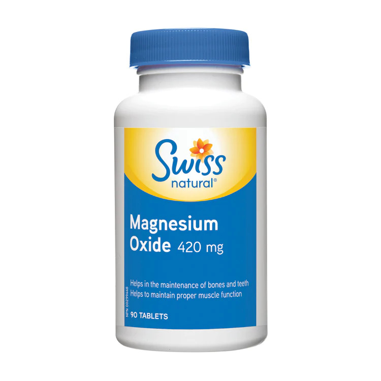 Swiss Natural Magnesium Oxide contains 90 tablets per bottle.